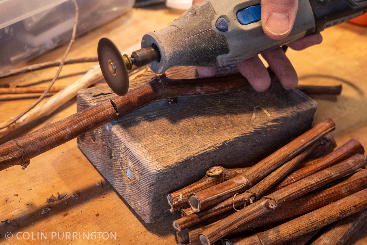 Here’s an action shot of me making new stems sections with a cut-off blade attached to a Dremel.
