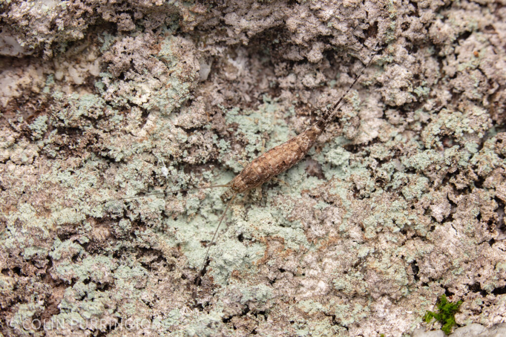 This is some sort of bristletail, wingless insects that move like predators but apparently eat lichen. The small photograph doesn’t do justice to the scales and eyes so below is a close-up.