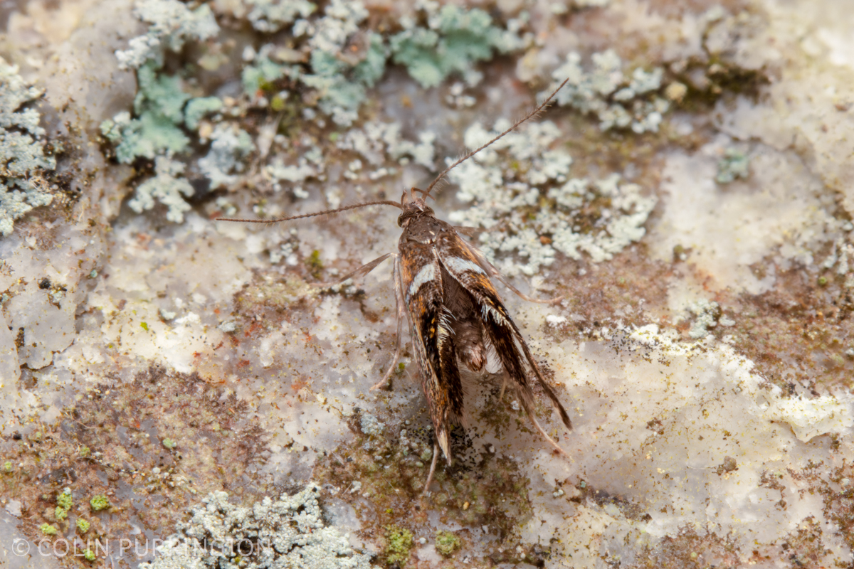 Shaler’s Fabiola moth (Fabiola shaleriella). This is another repeat species for the location, and I always seem to find them on the same stretch of rock. Like most small moths people have no idea what the larvae eat. I’m wondering whether it might use lichen.