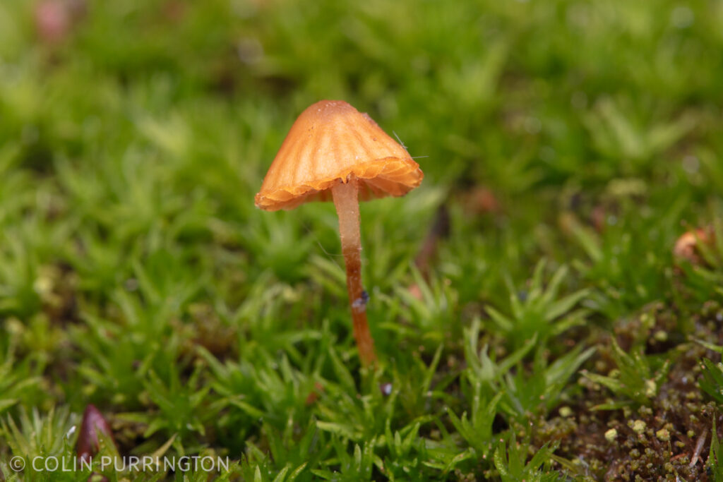 I’m not exactly sure what this tiny mushroom is, but possibly a moss bell (Galerina hypnorum). If genus is correct then very likely highly poisonous, thanks to amatoxins, the same compounds that are in death caps (Amanita phalloides).